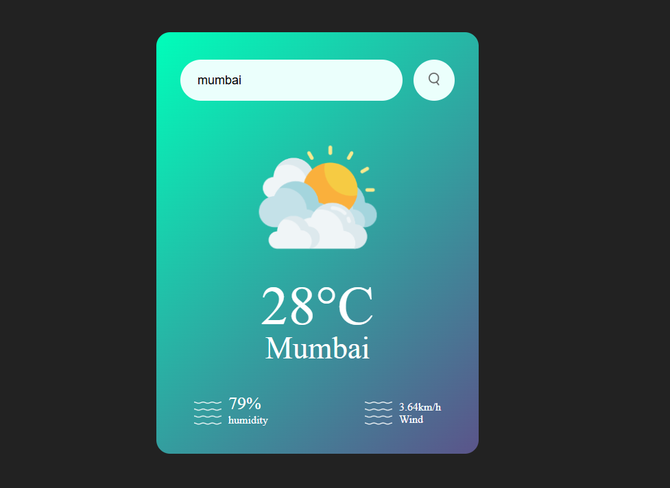 A weather forecast application built using HTML, CSS, and JavaScript. Fetches real-time weather data from a public API based on user input. Displays temperature, weather condition, humidity, and more with a clean UI.
